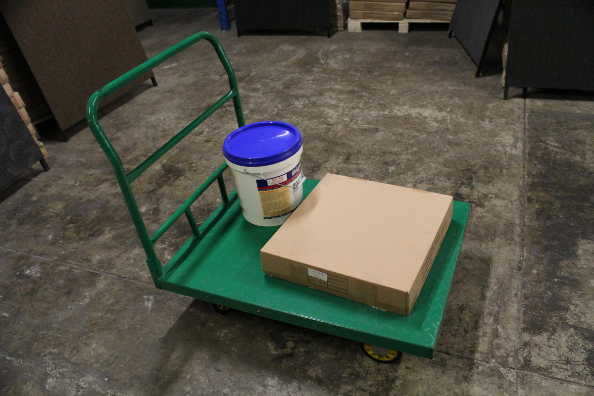 Solid 750mm W X 1 M L platform trolley, ideal for handling and transporting Carpet tiles, Boxes or Stock. Easily Fits through doorways So many practical applications where a large capacity is requir